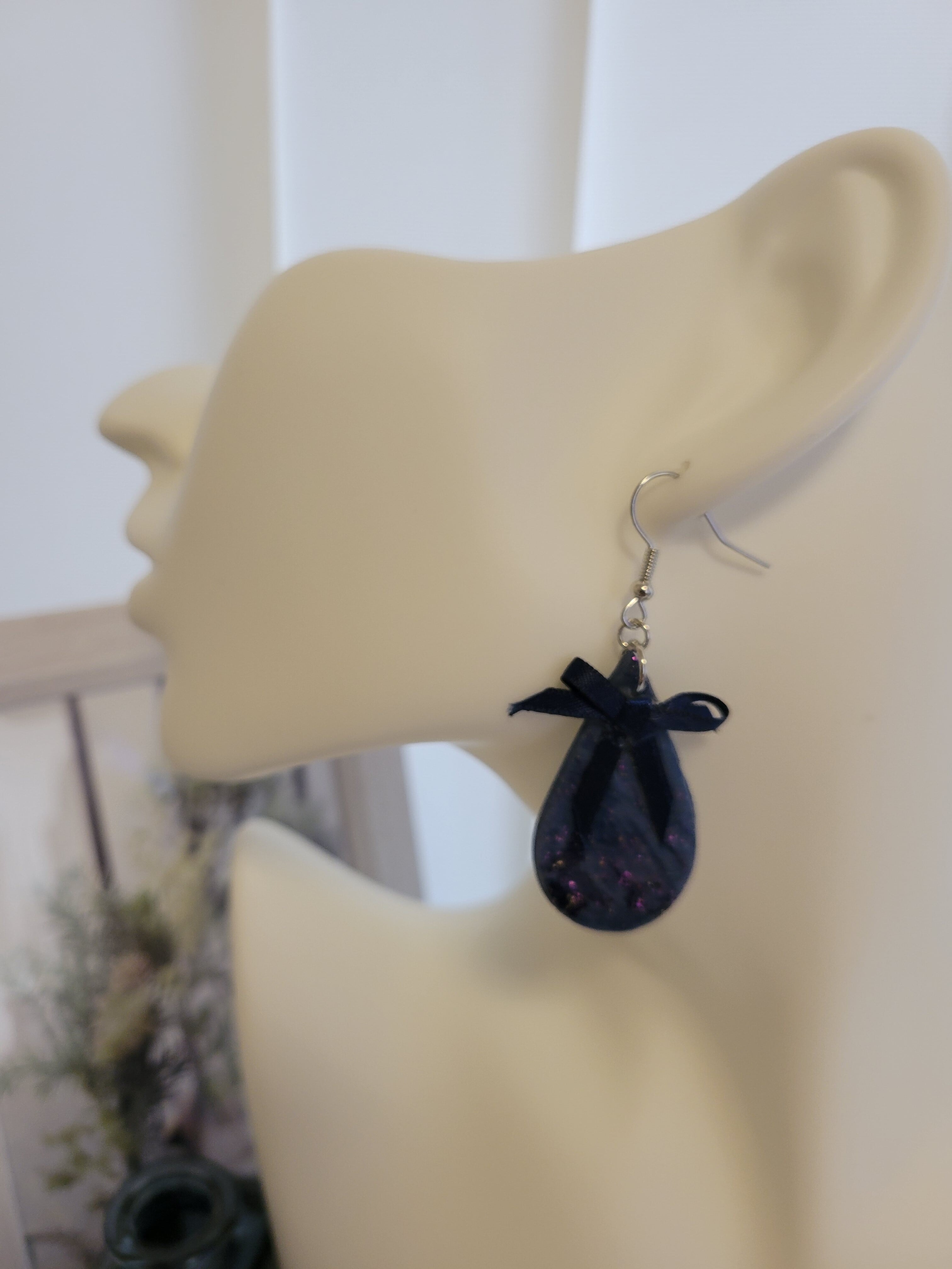 ポリマークレイを何層も重ね、絶妙な色合わせで個性的なアクセントを耳元にプラスします。